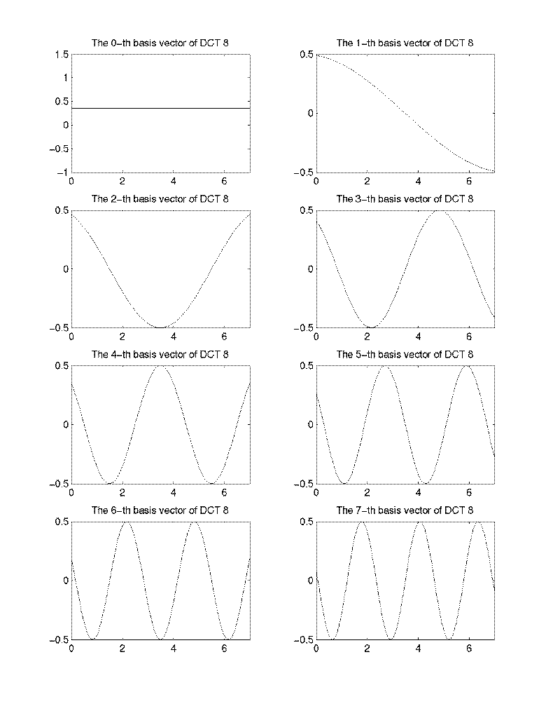 - The basis vectors of DCT for N=8