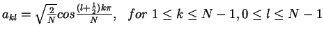 - The matrix AN=(akl) for DCT:
