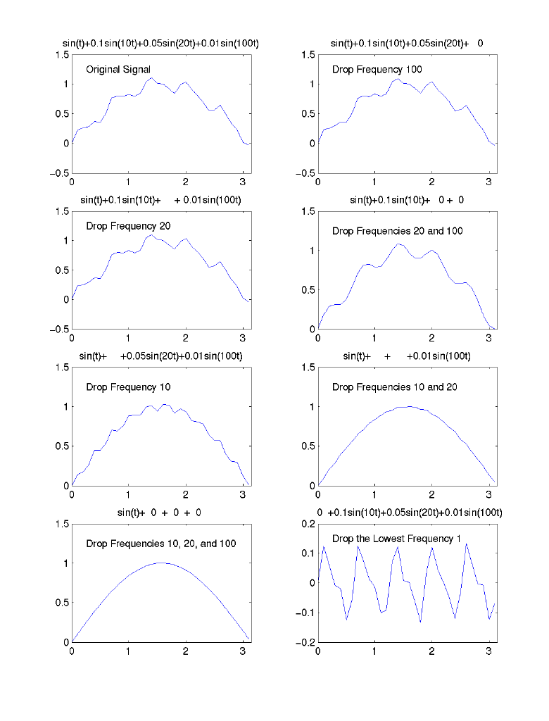 high frequencies are dropped, and the big change when the lowest frequency