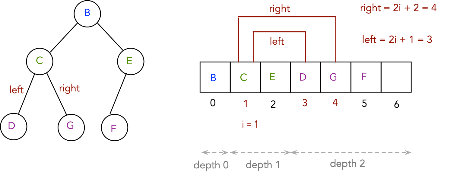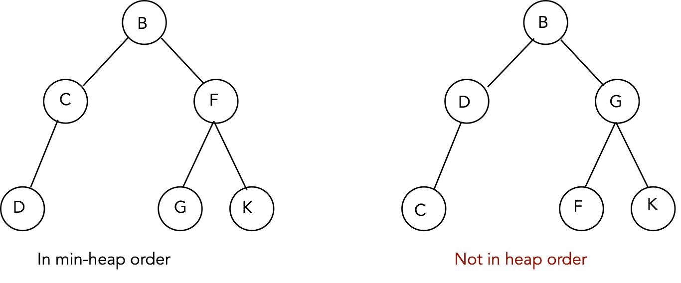 F D I E G K J _ _ _ P=0 L=1 R=2 Left is smallest (=> swap left with root)
