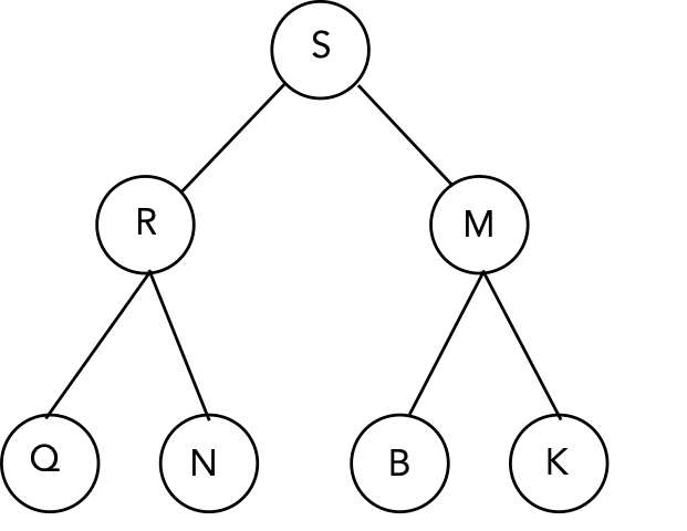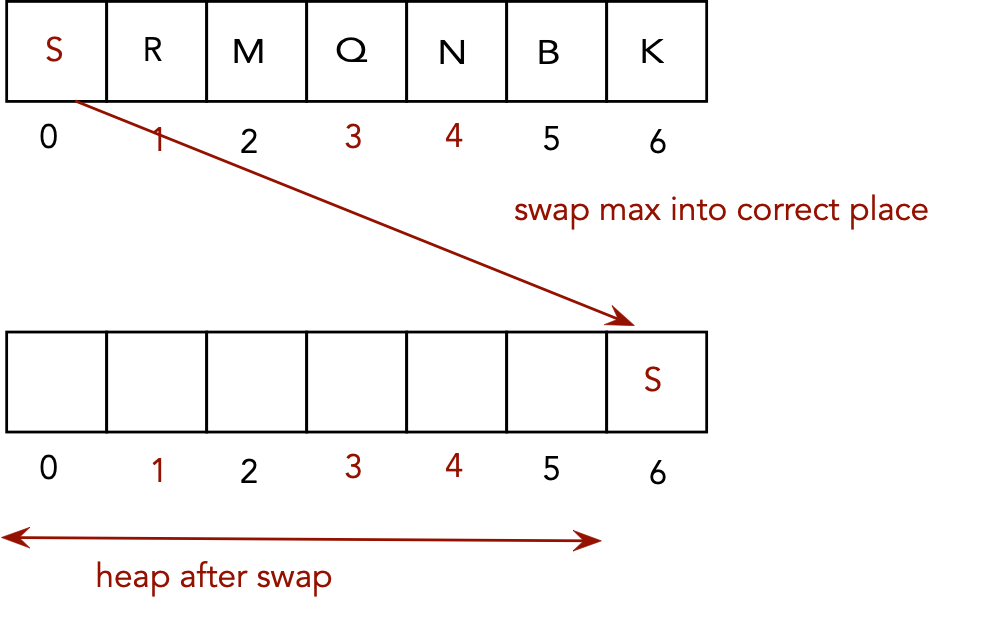 K J _ _ _ _ _ _ _ _ P=0 L=1 R=2 Left is smallest (=> swap left with root)