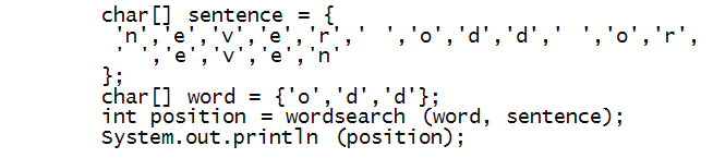 char[] sentence = {'n','e','v','e','r',' ','o','d','d',' ','o','r',' ','e','v','e','n'};